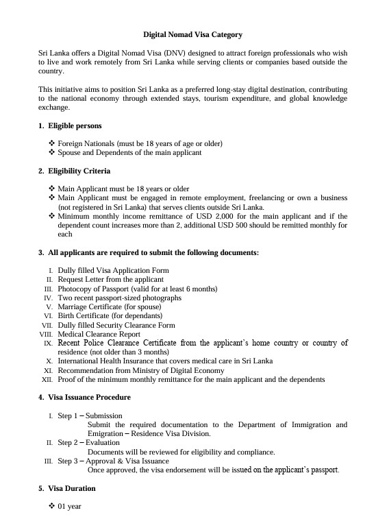 Under the main eligibility criteria, applicants must be 18 years or older and engaged in remote employment, freelancing, or own a business that serves clients outside Sri Lanka.